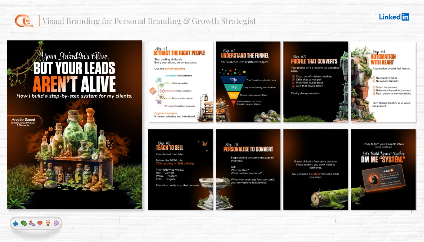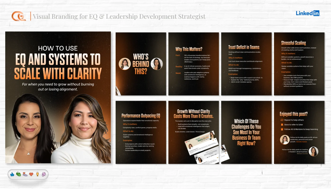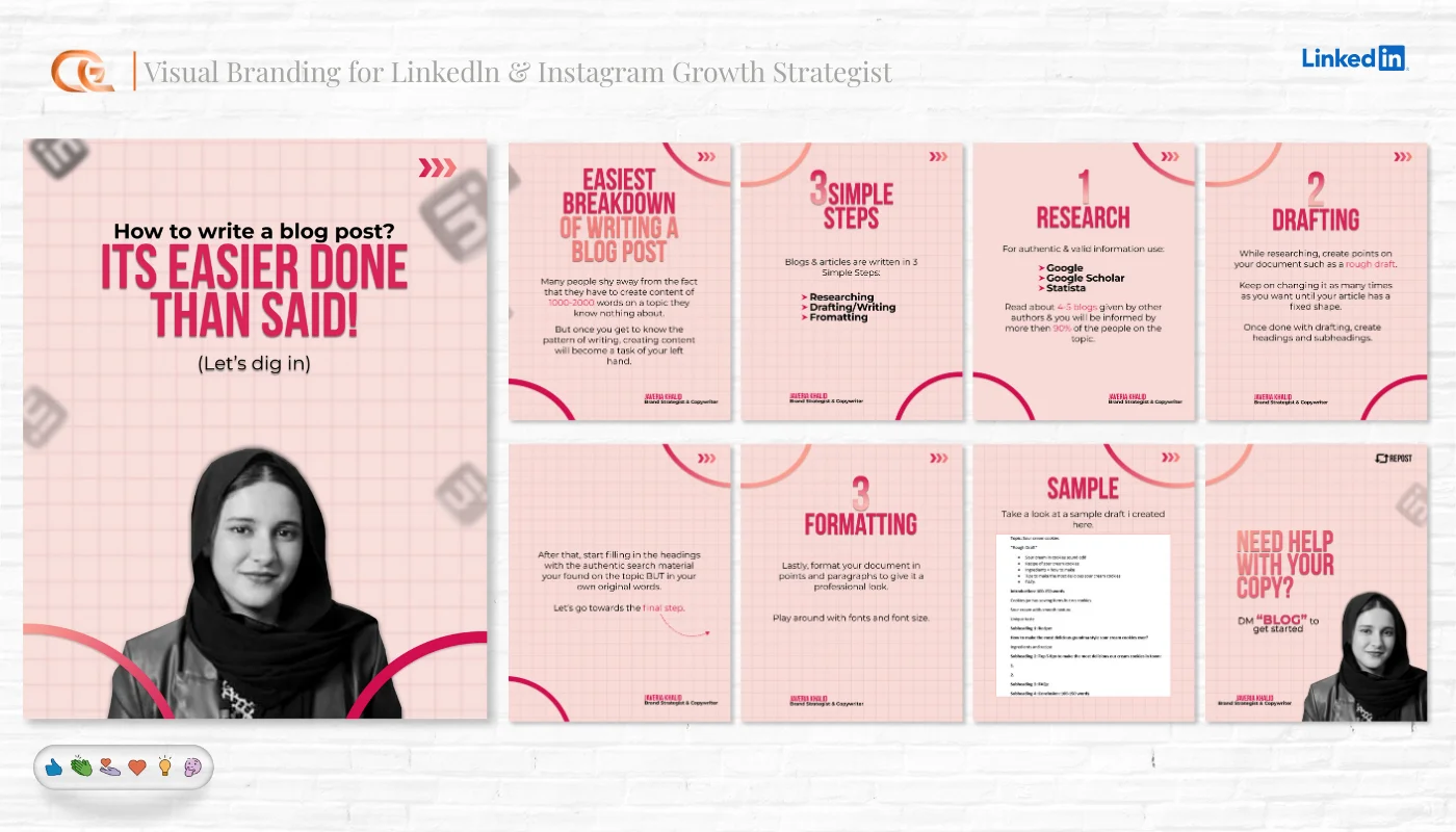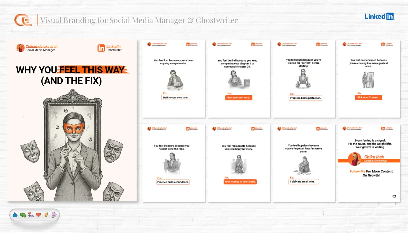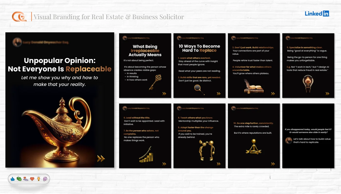 Multi-slide educational content and storytelling posts.