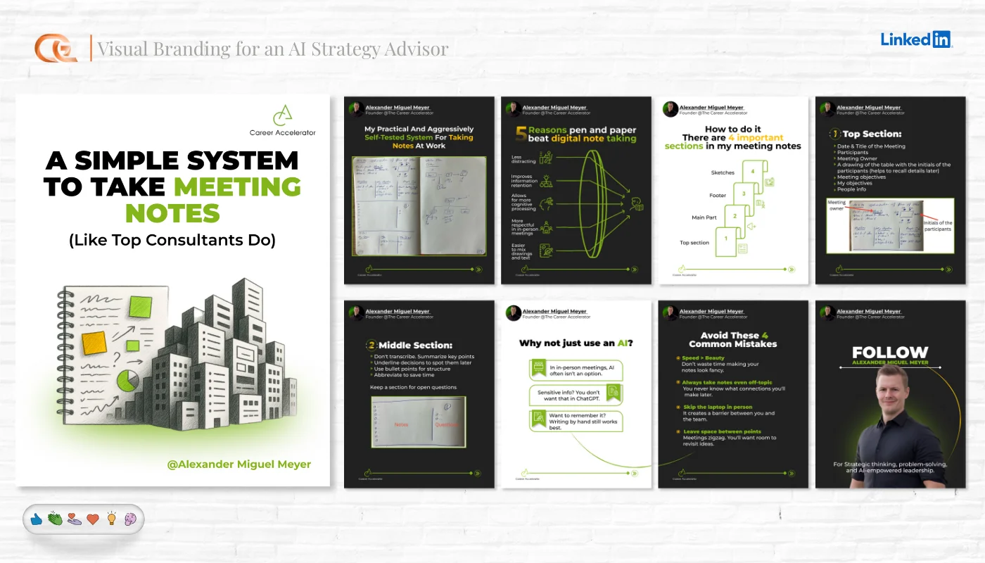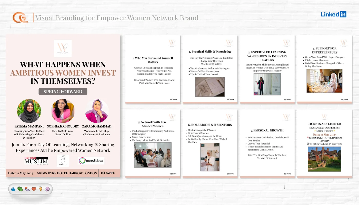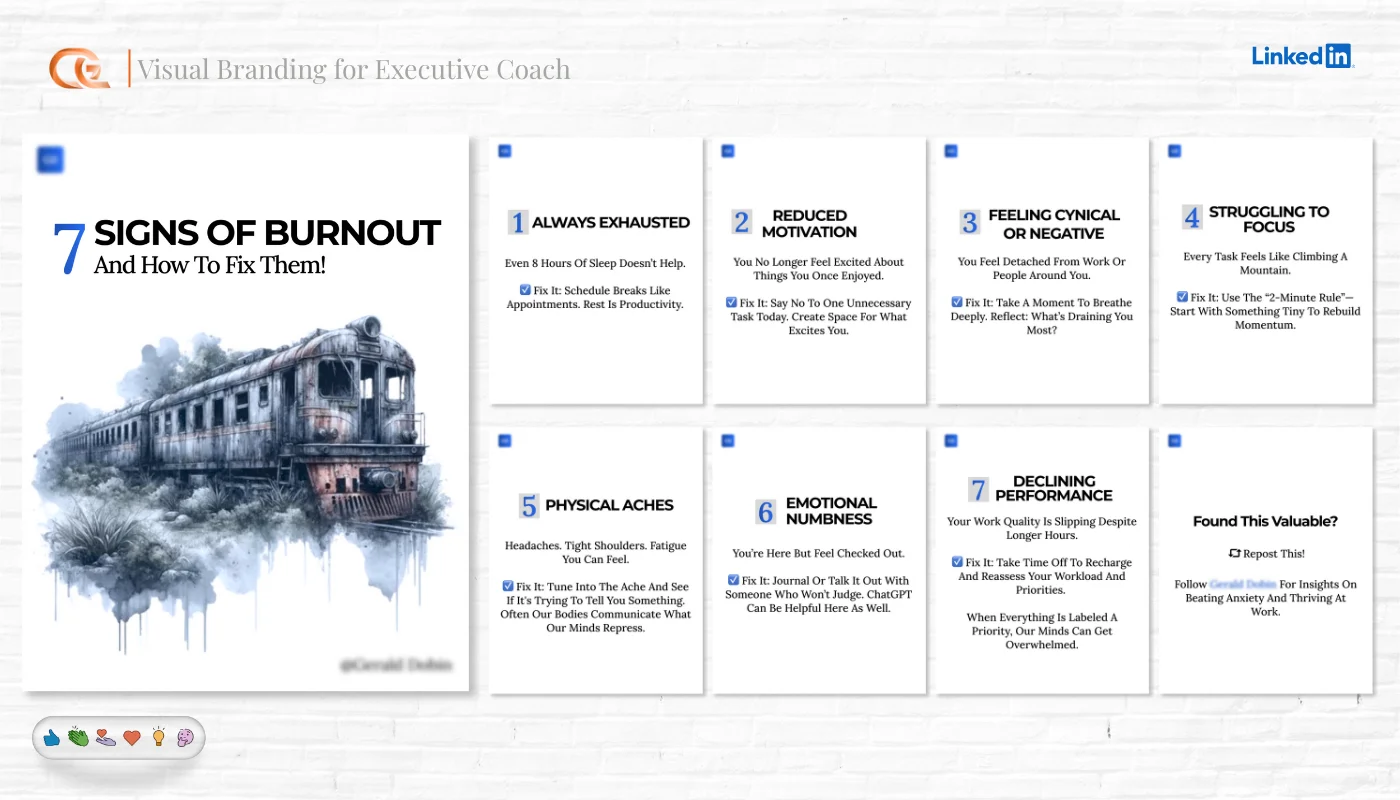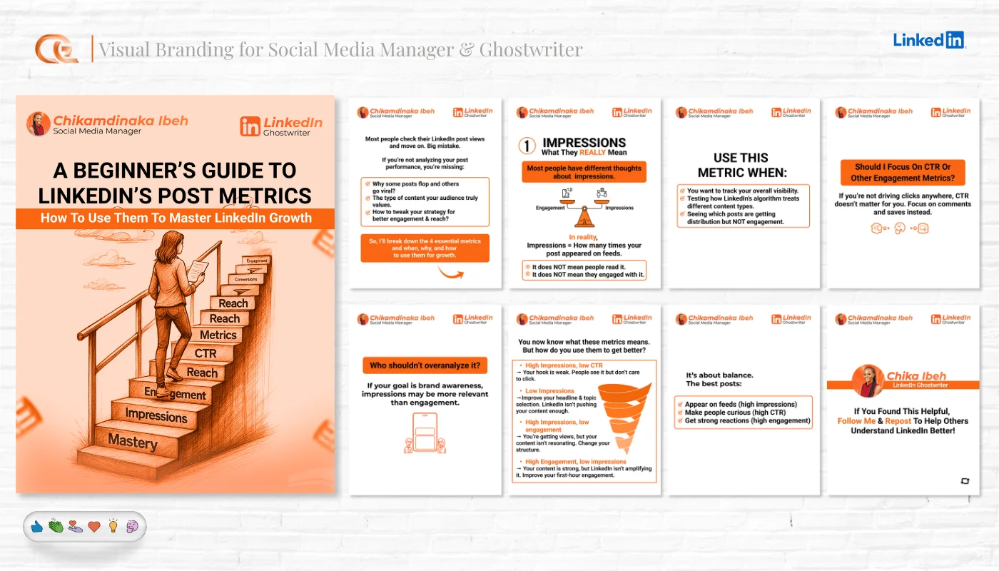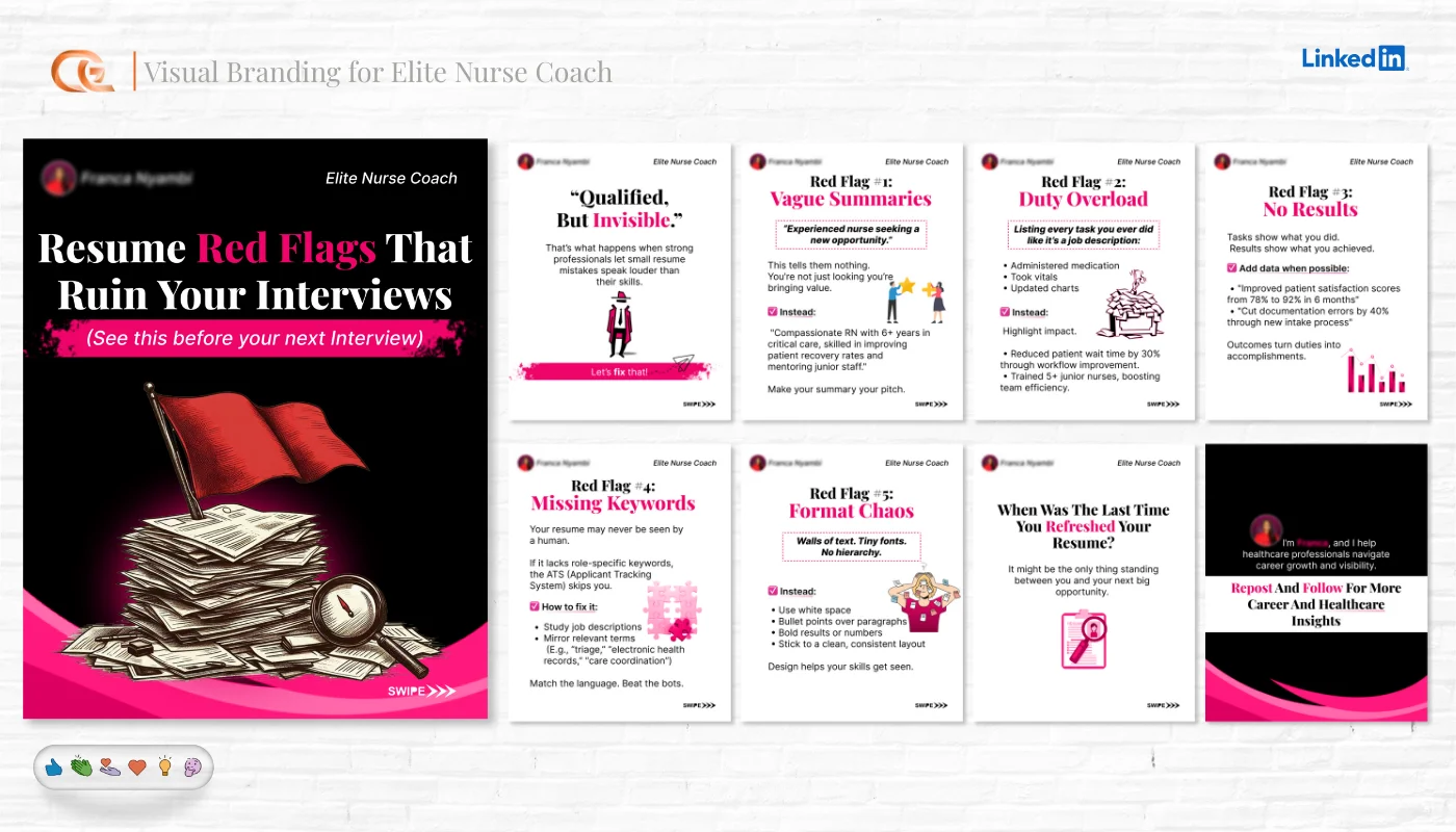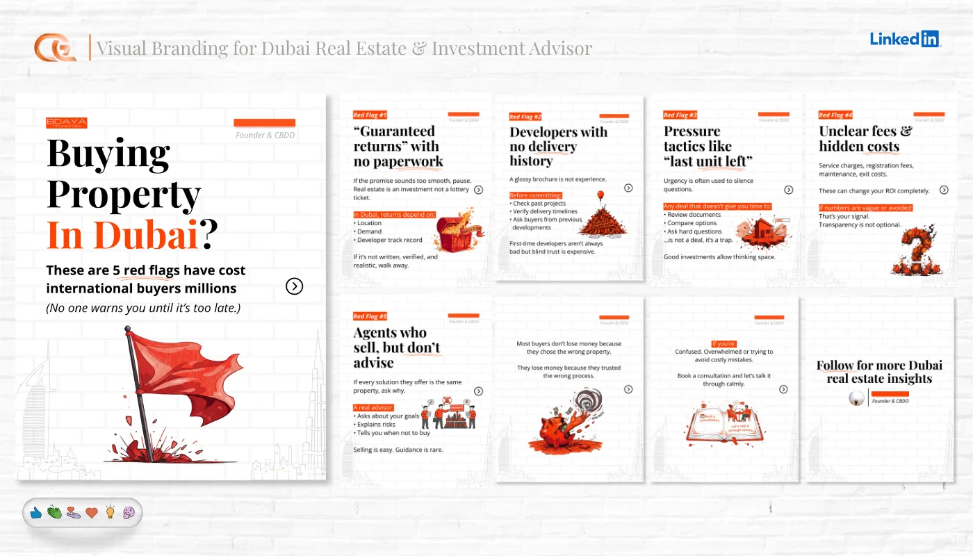 Multi-slide educational content and storytelling posts.